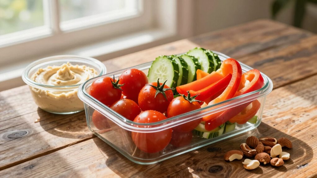 When you’re preparing your lunches, think about portion sizes and balance. Use containers that make it easy to pack everything neatly and keep ingredients fresh. Prepping items in advance, like grilled chicken or roasted vegetables, saves time during your busy mornings. You can mix and match these ingredients throughout the week, creating variety and preventing meal boredom. Also, consider adding a small container of hummus or a yogurt dip to make your vegetables more appealing. Incorporating healthy snacks like nuts, seeds, or fruit allows you to curb hunger between meals without reaching for processed options. Additionally, paying attention to meal timing can optimize your energy levels and digestion during your workday. Remember, consistency in your meal routine can significantly impact your overall health and productivity.