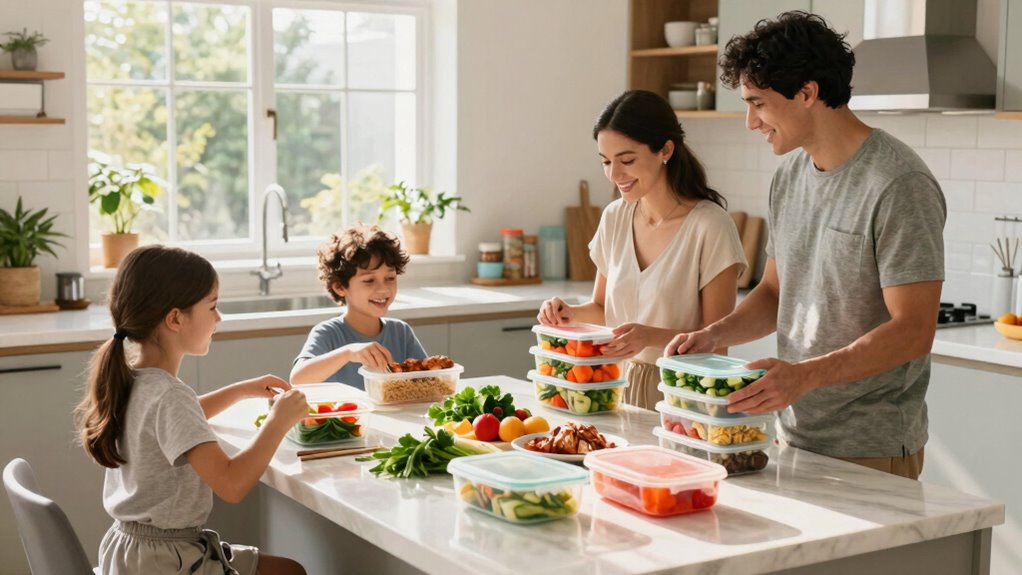 Finally, involving your family in the prep process can make meal times more enjoyable and teach kids valuable skills. Let them help with simple tasks like setting the table, sorting snacks, or assembling sandwiches. This not only speeds up the process but also encourages healthier eating habits and teamwork. When you focus on strategic planning, using budget-friendly ingredients, and preparing in advance, meal prep for your family of four becomes less of a chore and more of an efficient, rewarding routine. Incorporating meal planning techniques that include your children’s preferences can also foster a positive attitude toward healthy eating habits in the long run.